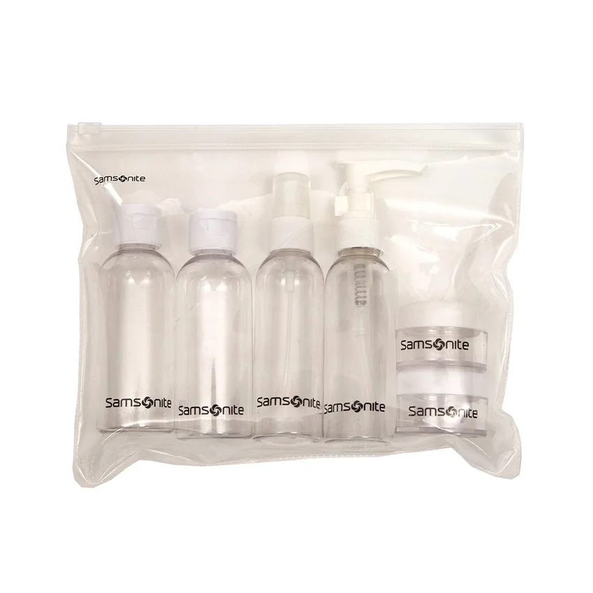 - Innehåller 4 plastflaskor med kläm-, spray-, pump- och hälllock för förpackning och förvaring av schampo, lotioner och andra resenödvändigheter.