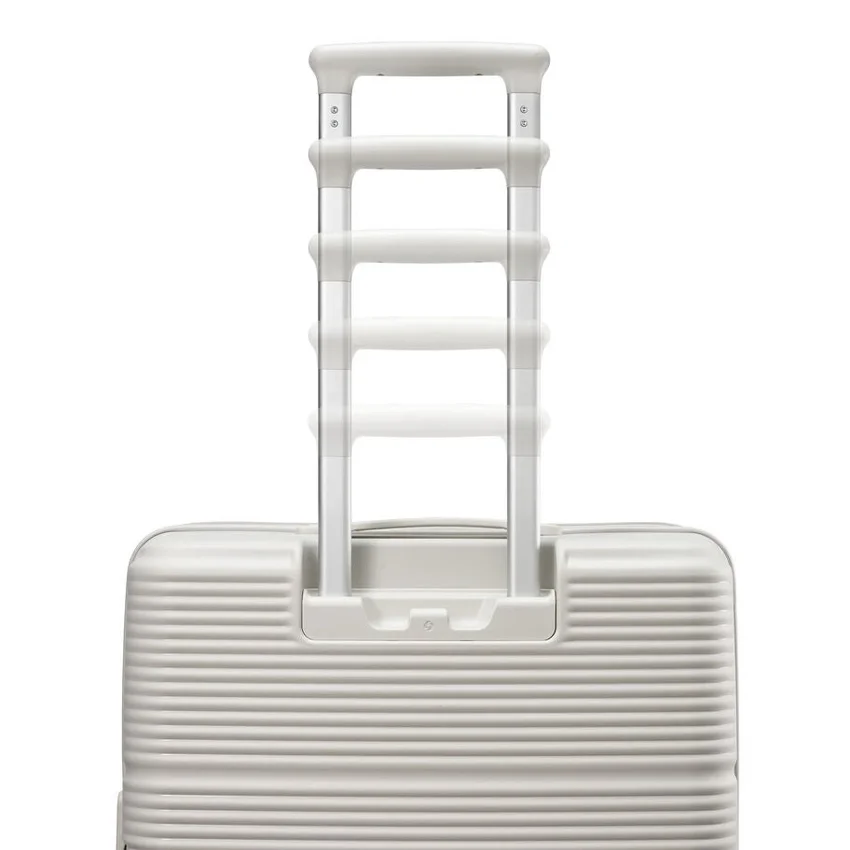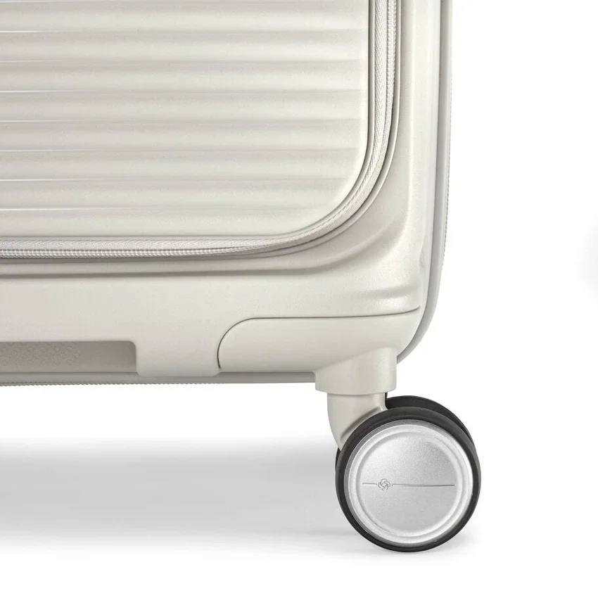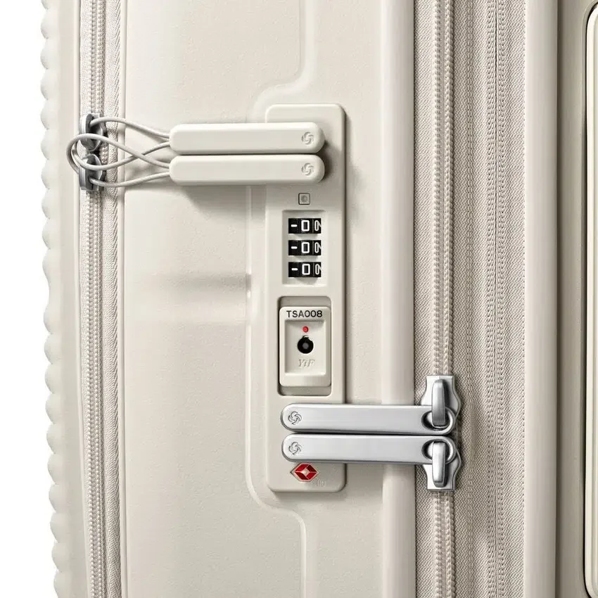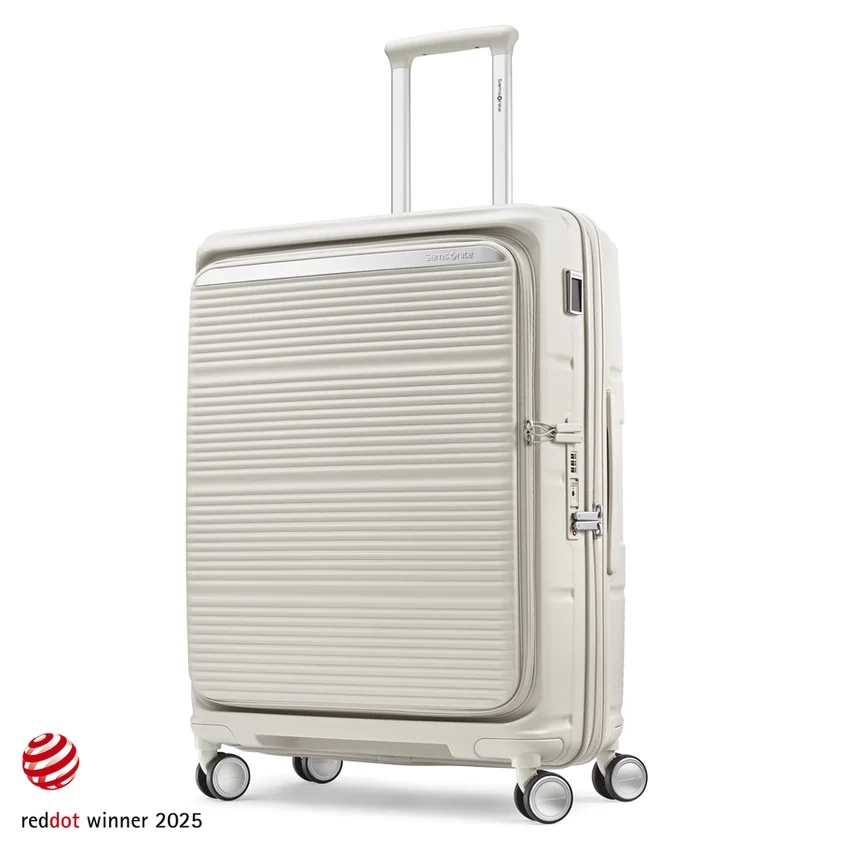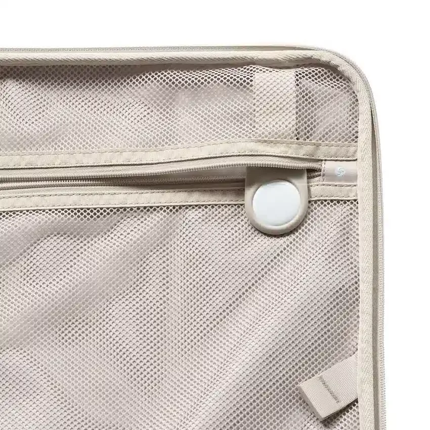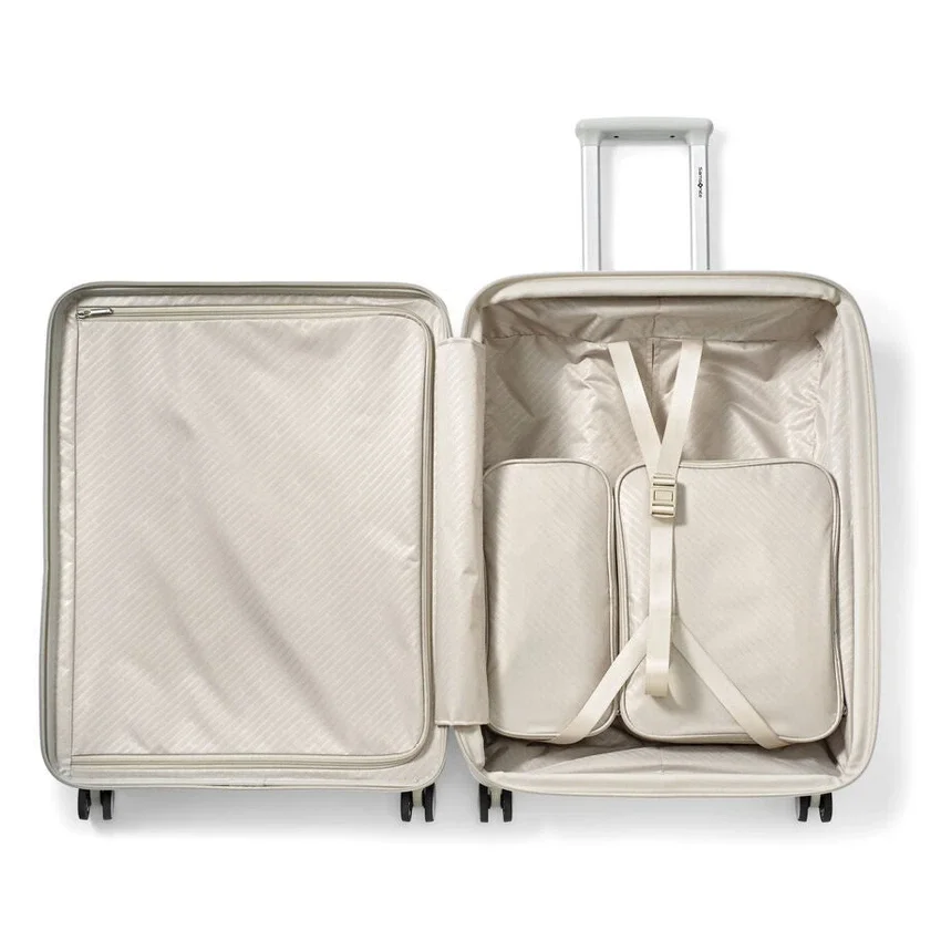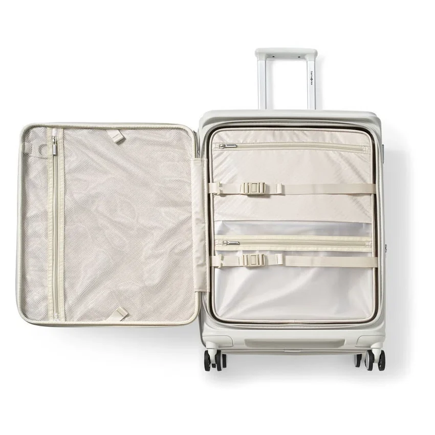 tillverkad av extremt hållbara och miljövänliga material, den medelstora spinnväskan öppnas från mitten, precis som traditionella resväskor, och har en extra öppning framtill som gör att du kan packa och packa upp helt även när golvutrymmet är begränsat.