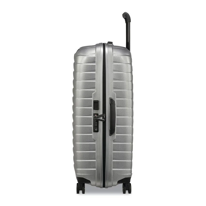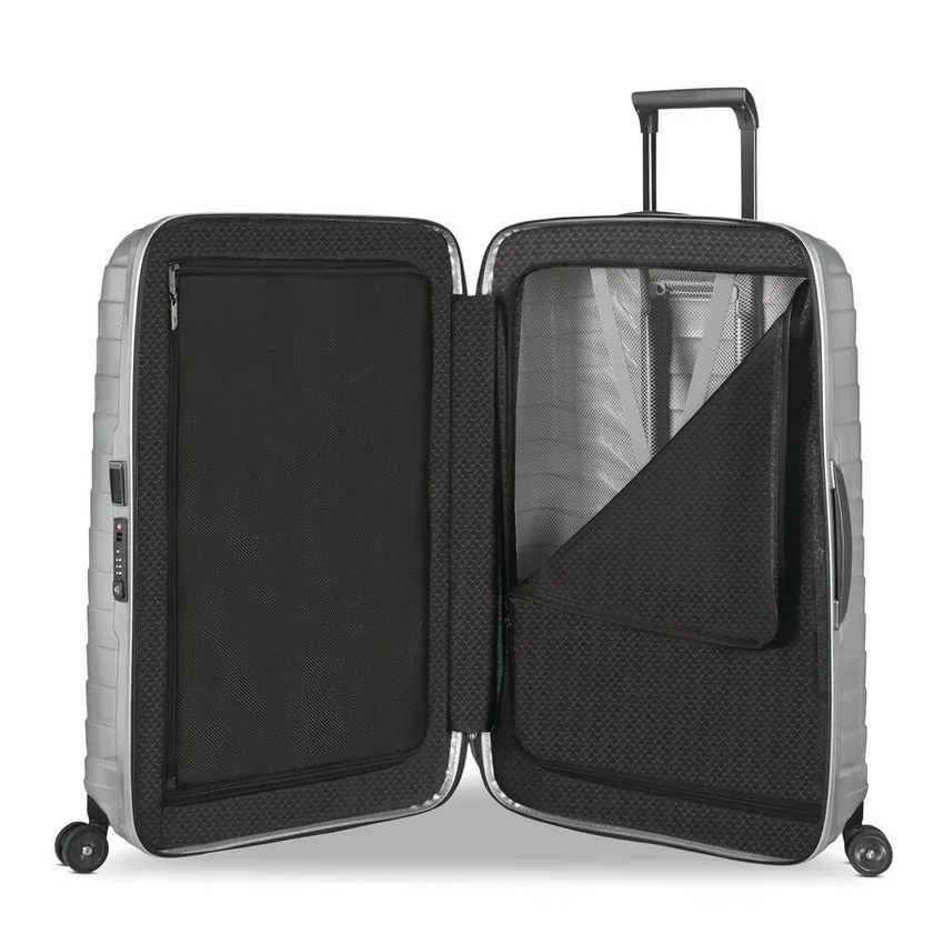 upplev en ny era av högpresterande resor med Proxis. Ytterhöljet är tillverkat av Roxkin™, ett exklusivt flerlagersmaterial utvecklat av Samsonite. Det återfår sin form och erbjuder enastående styrka, motståndskraft och lätthet. Den sofistikerade designen utstrålar självförtroende och är fullt utrustad för att tillgodose alla dina resebehov.