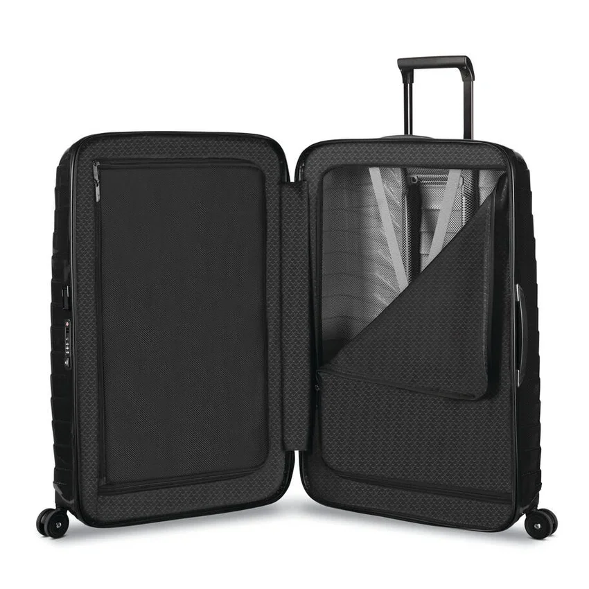 upplev en ny era av högpresterande resor med Proxis. Ytterhöljet är tillverkat av Roxkin™, ett exklusivt flerlagersmaterial utvecklat av Samsonite. Det återfår sin form och erbjuder enastående styrka, motståndskraft och lätthet. Den sofistikerade designen utstrålar självförtroende och är fullt utrustad för att tillgodose alla dina resebehov.