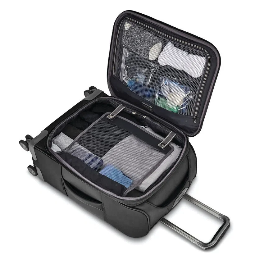 tillåtna storlekar och vikter för kabinväskor varierar mellan flygbolagen. Gå till shop.samsonite.com/airline-carry-on-guide för mer information. Om väskan är överfylld kan den eventuellt inte accepteras av flygbolagen.