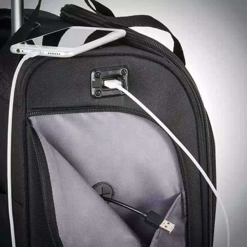 Samsonite Spinner Underseater med USB-port har 360°-spinnerhjul och smart förvaring som håller dina viktigaste saker laddade, organiserade och inom räckhåll.