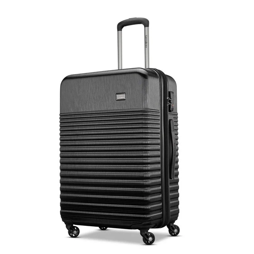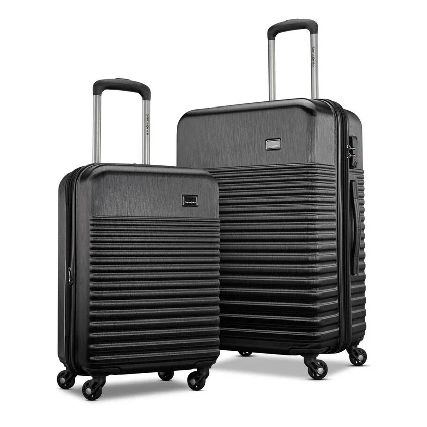 Samsonites 2-delade väskset innehåller en kabinväskor och en medelstor spinner med 360°-hjul, TSA-lås och ett reptåligt, strukturerat skal.