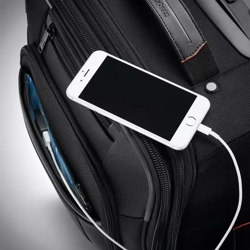 När du lever ur din resväska är detaljerna viktiga. Lägg din telefon i den patentsökta fickan så laddas den trådlöst. Skydda din identitet med RFID-fickan. Häng kläderna snyggt i den trefaldiga klädfickan. Och packa vätskor i WetPak™-fickan. Allt i en slitstark men sofistikerad väska.