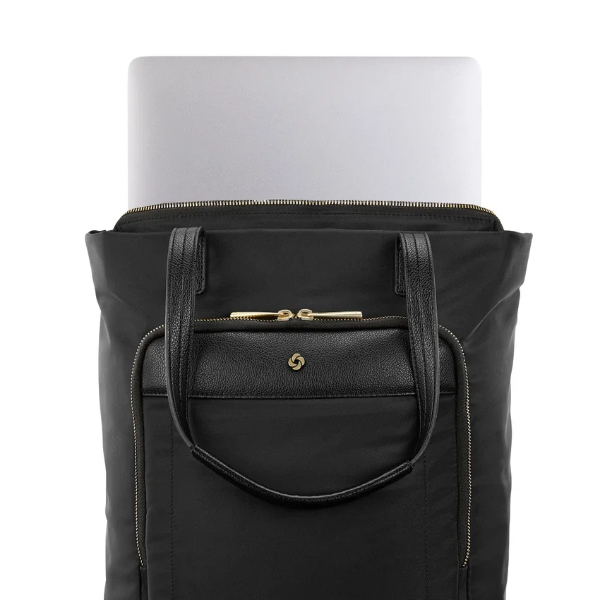Den konvertibla ryggsäcken erbjuder tre snygga bäralternativ – ryggsäck, tygkassa eller axelväska. Med ett vadderat laptopfack, vattenflaskhållare och förvaringsfack fram är den perfekt för pendling eller resor. Mjuka detaljer i champagnefärg och strukturerad kant ger en elegant touch.förvaring