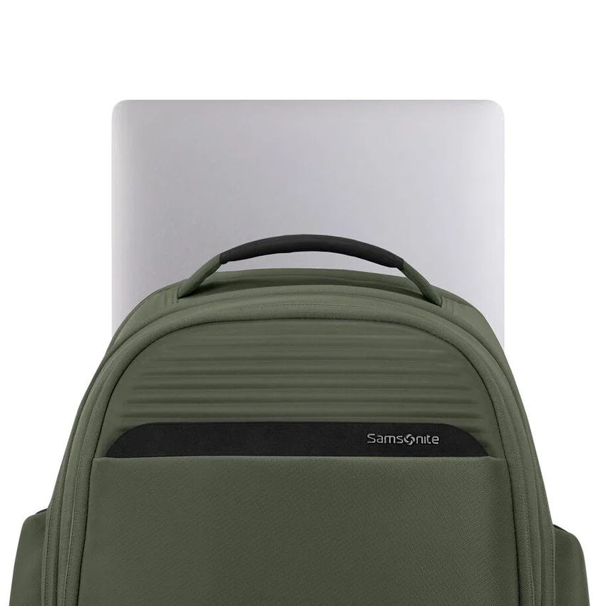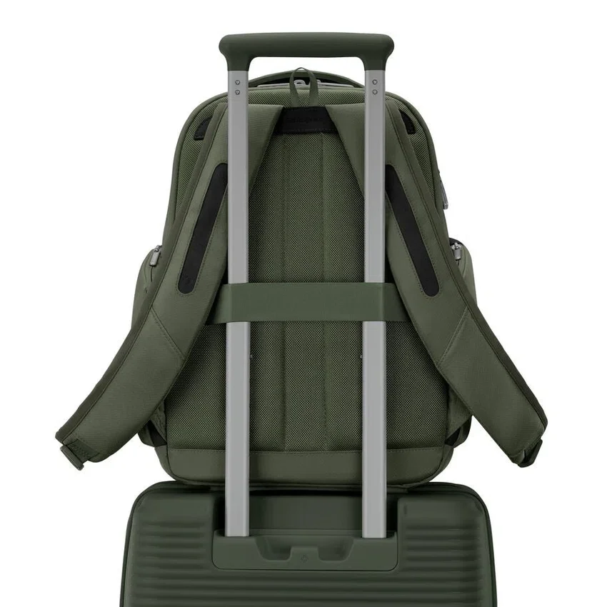 Everyday Ryggsäck har fem fack: ett säkert fickfack på framsidan, ett stort huvudfack i mitten, ett särskilt fack för bärbar dator/surfplatta på baksidan och ett separat dokumentfack med särskilda förvaringsmöjligheter inuti.