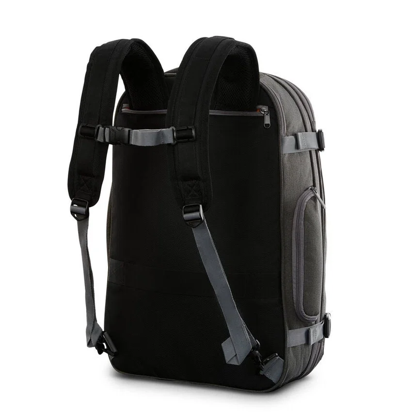 denna ryggsäck har massor av fickor strategiskt placerade både inuti och utanpå så att allt har sin plats. den är inte bara lätt att organisera, utan är även utvidgbar med externa kompressionsremmar så att du fortfarande får plats med din favoritoryggsäck i bagagehyllan.