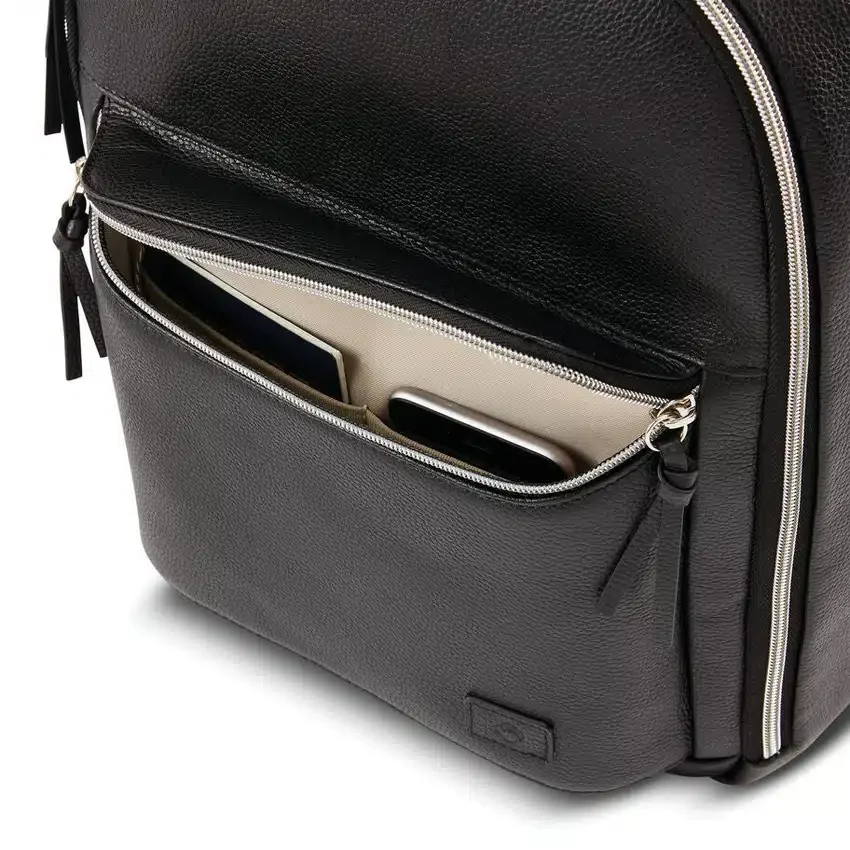 Denna mångsidiga ryggsäck är enkelt chic och tillverkad i strukturerat pebble-skinn med silverfärgade detaljer för en tidlös, stilren look som passar till nästan allt.