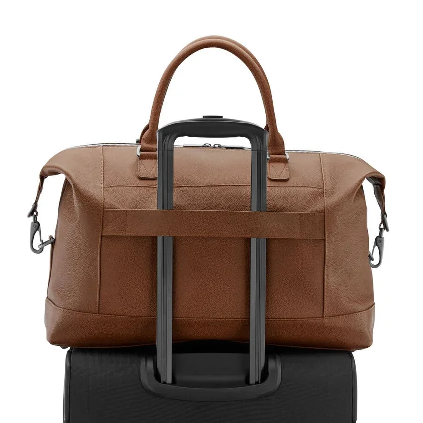 Denna lyxiga Classic Leather Weekender-väska är utformad för att förhöja din resa genom att kombinera stil och praktiskhet, vilket gör den perfekt för weekendresor.